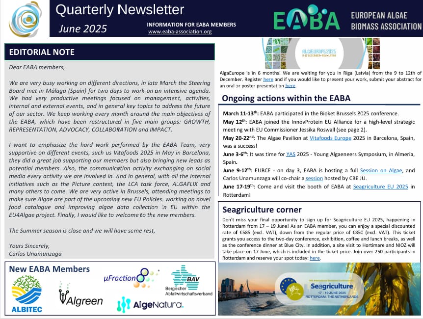 Semarang, Juni 2025 – PT Alga Bioteknologi Indonesia (Albitec) dengan bangga mengumumkan bahwa per Juni 2025, Albitec telah resmi menjadi anggota European Algae Biomass Association (EABA). Langkah ini menjadi tonggak penting dalam misi Albitec untuk mengembangkan industri mikroalga yang inovatif, berkelanjutan, dan terhubung dengan ekosistem global.