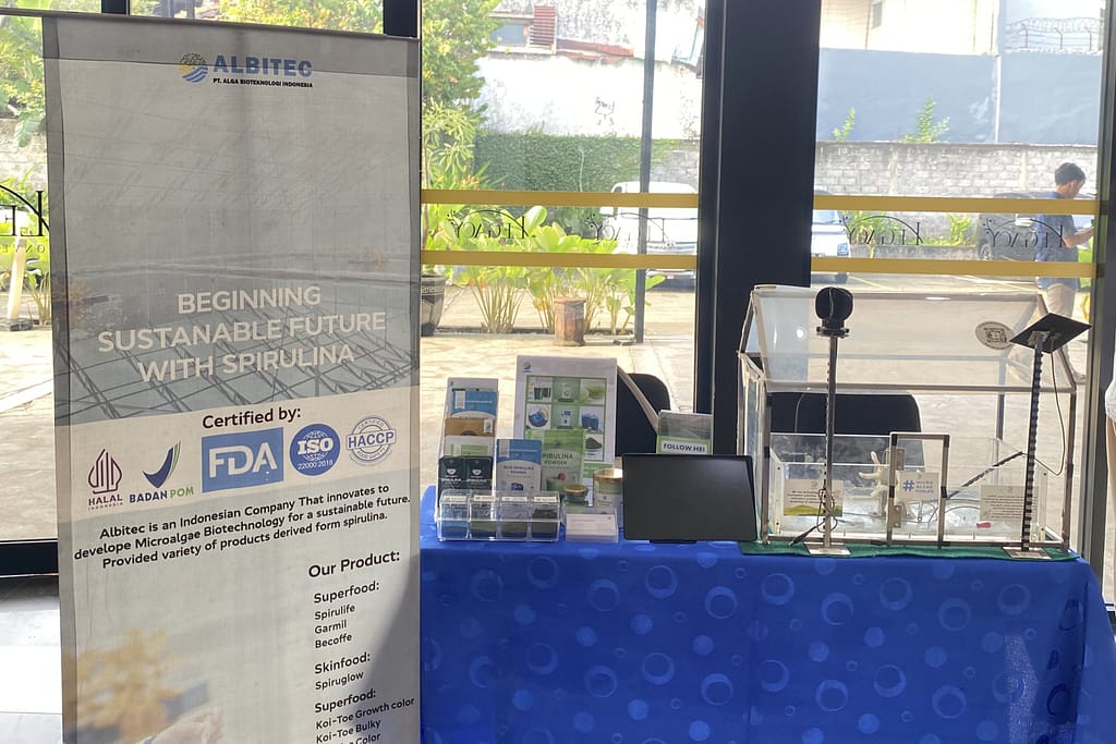 Melalui partisipasi ini, PT Alga Bioteknologi Indonesia (Albitec) menunjukkan komitmen terhadap keberlanjutan. Booth yang ditampilkan memuat produk spirulina unggulan dan miniatur greenhouse spirulina sebagai media edukasi untuk pengunjung.